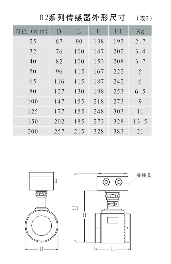 02型傳感器采用無法蘭設計,結構緊湊、重量輕、拆卸方便。較短的測量管有利于清除管壁的污垢。